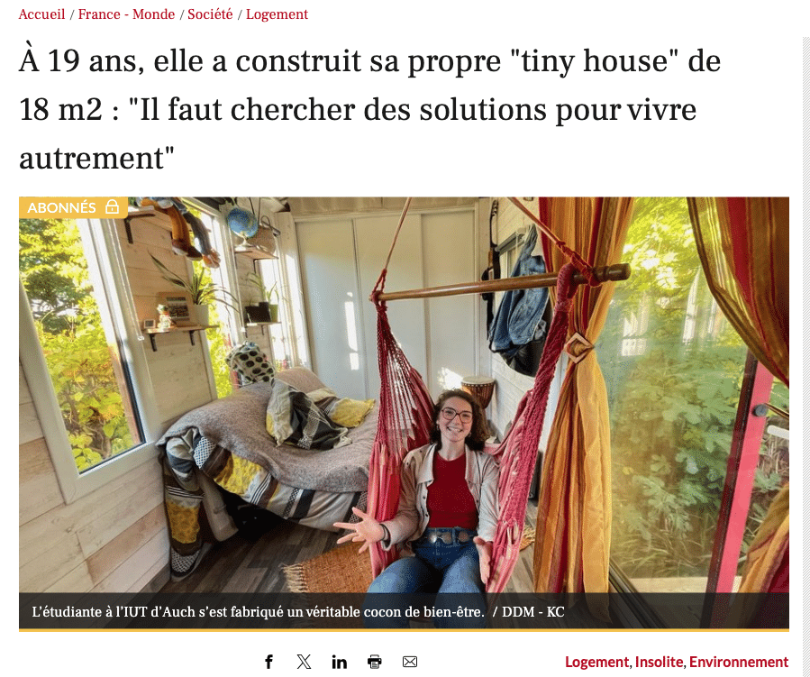 En parallèle de mes années de lycée, je me suis lancée dans la construction de mon propre logement, ma Tiny house, qui me suivra pour mes études.